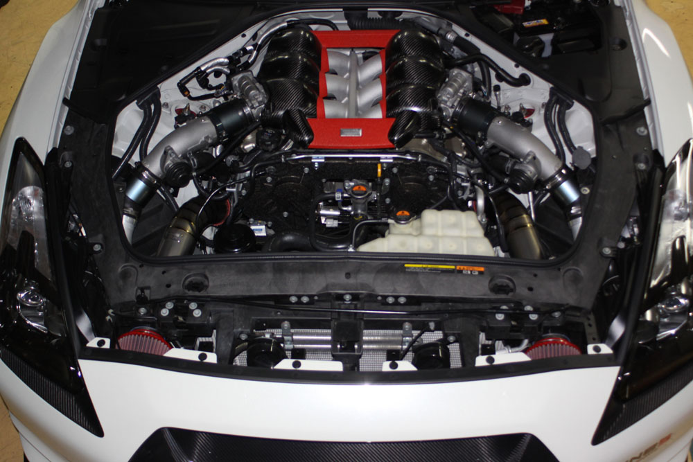 R35 GT-Rのエンジンやタービン等がアップグレードされハイパワー化が進むと、吸入空気のコントロールが課題になってきます。エアフィルターやパイピング等のレイアウトや容量、センサーに対する影響など、シビアな部分を熟知した上でセッティングする必要性があります。